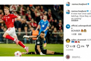霍伊伦连续4场比赛取得进球,展现了良好的状态,他在社交媒体上写道:“一位智者曾说过——进球如番茄酱,一旦开瓶,便源源不绝。”