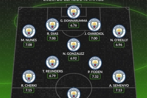 whoscored预测曼城主力阵及本赛季英超场均评分: